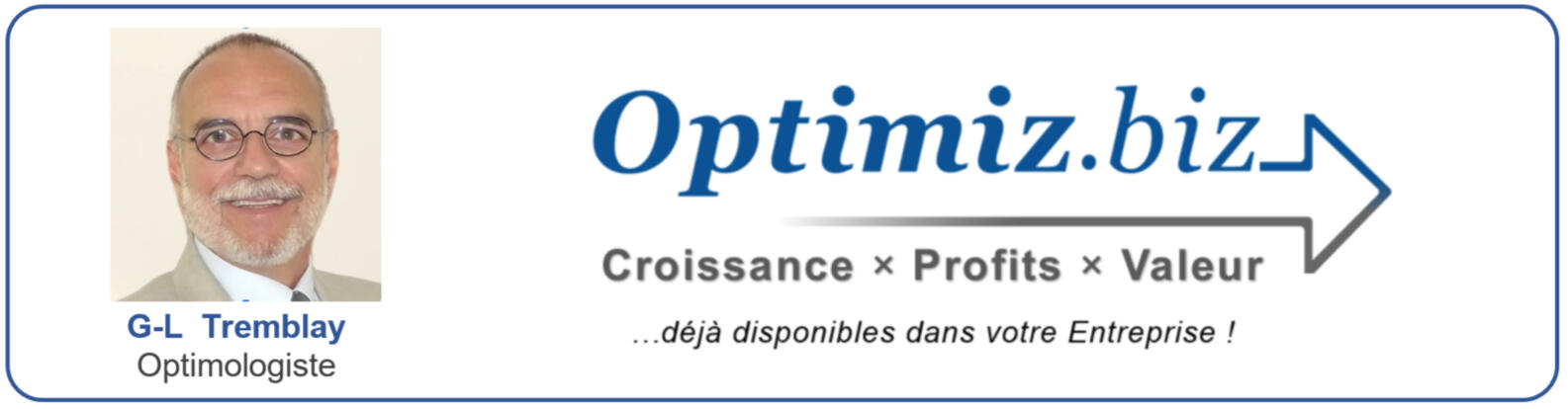 - Valoriser ce qui vous rend unique.Avant d’investir dans plus… explorez ce que vous possédez déjà.LA MÉTHODOLOGIE... OPTIMIZ.BIZElle repose sur l'Équation Stratgique :[ Croissance x Profits x Valeur ] = Optimisation ExponentielleCes trois (3) Vecteurs de performance ne s'additionnent pas... ils se multiplient. Deux (2) Approches se combinent et se complètent :- Amélioration continue... de vos actvités et initiatives actuelles.